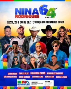Nina Rodrigues celebra 64 anos com três dias de festa e grandes atrações.