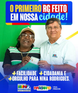 O prefeito Jones Braga anunciou mais um importante avanço para o município de Nina Rodrigues. A unidade do Viva Procon já está em pleno funcionamento e, nesta segunda-feira , foi emitido o primeiro Registro Geral (RG) na cidade.